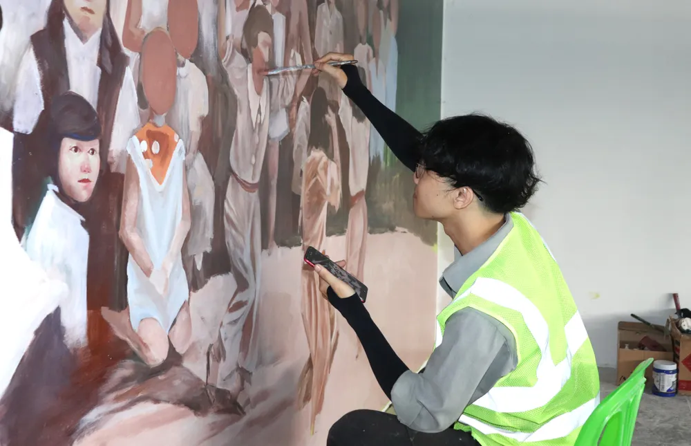 Thực hiện sơn dầu bức tranh trong bảo tàng