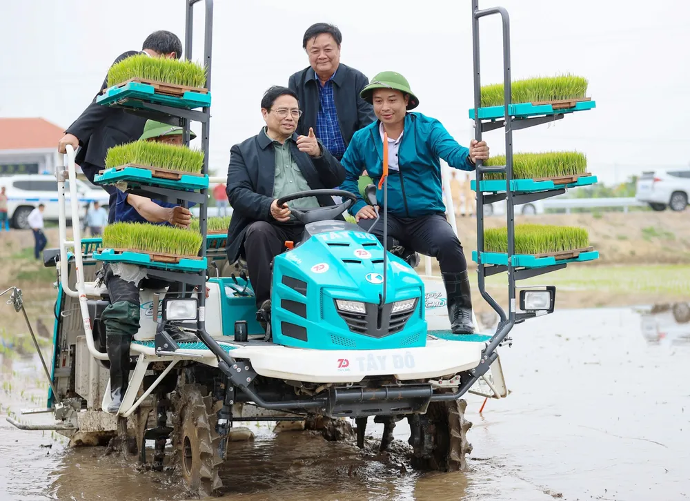Sau khi nghe báo cáo về tình hình sản xuất lúa vụ đông xuân 2024 và việc ứng dụng cơ giới hóa trong gieo cấy lúa, mô hình ứng dụng nông nghiệp công nghệ cao trong sản xuất lúa tại Hải Dương, Thủ tướng trực tiếp ngồi máy cấy để điều khiển cấy lúa trên cánh đồng. Tiếp đó, Thủ tướng và đoàn công tác thăm vùng sản xuất cà rốt tập trung phục vụ xuất khẩu; thăm Hợp tác xã Đức Chính, cơ sở sơ chế, đóng gói cà rốt và cắt băng chúc mừng xuất khẩu lô hàng cà rốt đầu xuân tại xã Đức Chính, huyện Cẩm Giàng. Thủ tướng đã thu hoạch cà rốt cùng nông dân và nói chuyện, động viên tại khu vực thu hoạch cà rốt.
