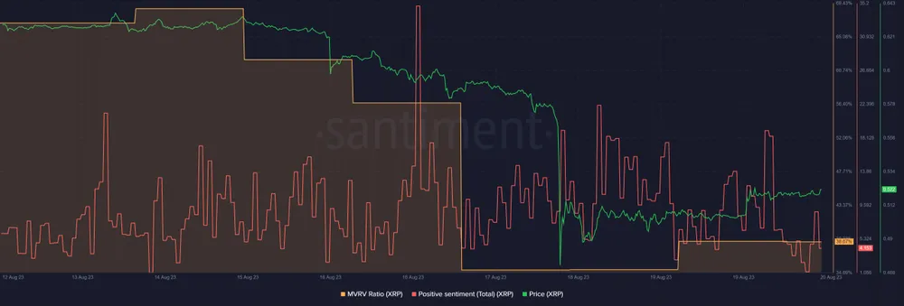 Vào thời điểm viết bài, XRP được giao dịch ở mức 0,5288 USD với mức vốn hóa thị trường hơn 27,9 tỷ USD. Đợt tăng giá gần đây đã giúp XRP tăng nhẹ Tỷ lệ MVRV. Ngoài ra, tâm lý tích cực xung quanh token này cũng tương đối cao.