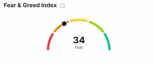Điều này xảy ra khi chỉ số Sợ hãi và Tham lam của thị trường rơi xuống mức 34. Khi giá trị của chỉ số này vẫn ở mức thấp, cơ hội tăng giá sẽ tăng lên. Do đó, nhà đầu tư có thể coi đây là cơ hội tốt để gia tăng tích lũy nhằm hưởng lợi trong đợt tăng giá tiếp theo.