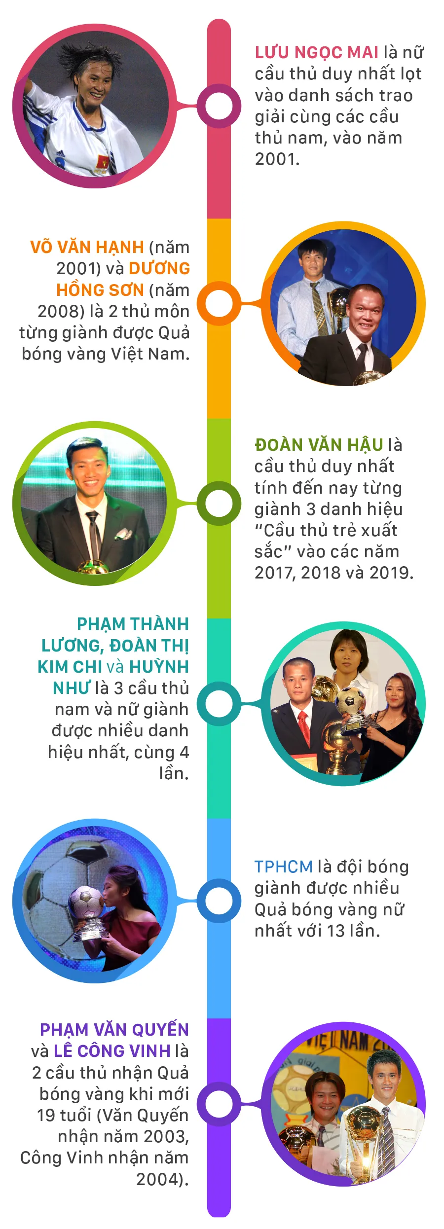 28 năm qua, người hâm mộ không thể nào quên những cái tên được vinh danh ở trong các buổi lễ trao giải rất long trọng và hoành tráng: Huỳnh Đức - Hồng Sơn - Công Vinh - Tài Em - Thành Lương - Quang Hải - Hùng Dũng - Văn Quyết - Hoàng Đức... bóng đá nam; Ngọc Mai - Kim Hồng - Kim Chi - Kiều Trinh - Tuyết Dung - Huỳnh Như... bóng đá nữ; hay là Văn Vũ - Trọng Luân - Quốc Hưng - Minh Trí - Văn Ý ở hạng mục futsal. Họ là những anh hùng nổi bật suốt ngần ấy năm qua của bóng đá Việt Nam.