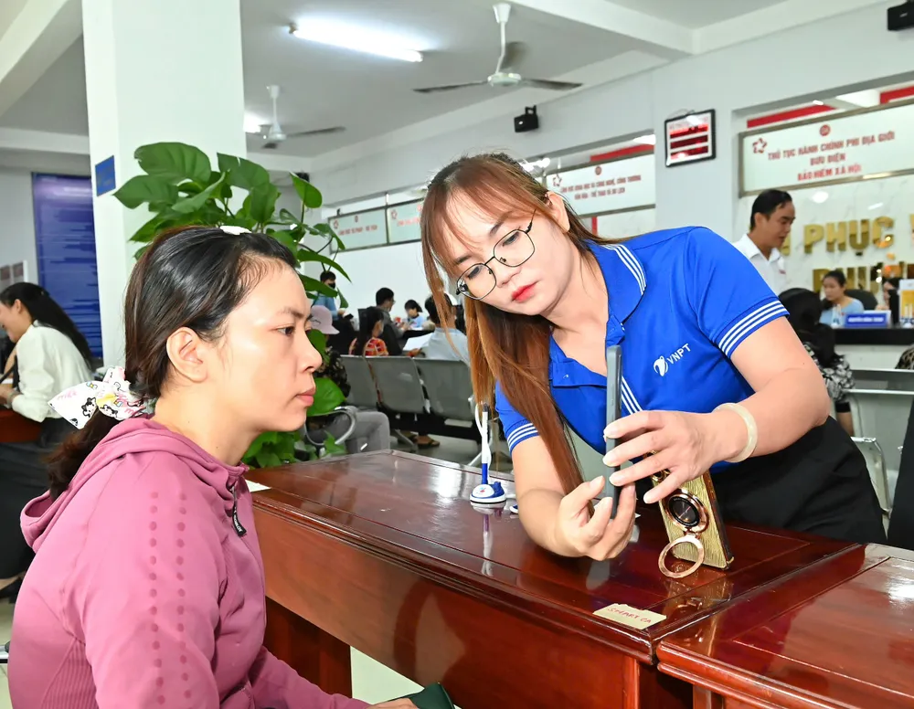 Bí thư Thành ủy TPHCM thăm hỏi người dân đến làm thủ tục hành chính. Ảnh: VIỆT DŨNG