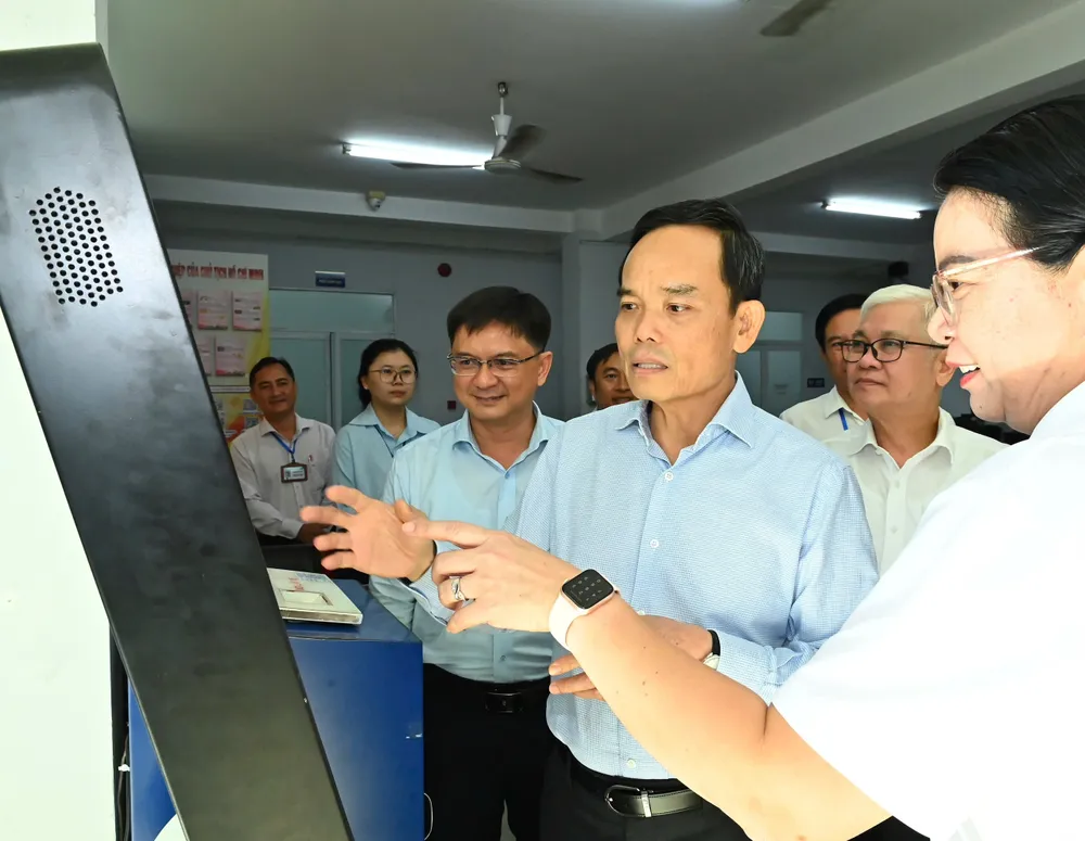 Trước buổi làm việc, Bí thư Thành ủy TPHCM Trần Lưu Quang cùng đoàn công tác đến khảo sát tình hình hoạt động của Trung tâm Phục vụ hành chính công phường Dĩ An.