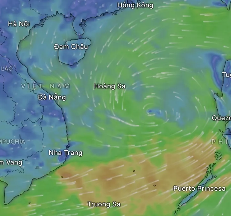 Dự báo tâm áp thấp nhiệt đới vào hồi 9 giờ ngày mai 10-6. Nguồn: WINDY