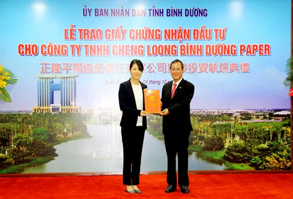 (ĐTTC) – Cuối tuần qua (4-12), UBND tỉnh Bình Dương vừa tổ chức trao giấy chứng nhận đầu tư cho Công ty TNHH Cheng Loong Bình Dương Paper.