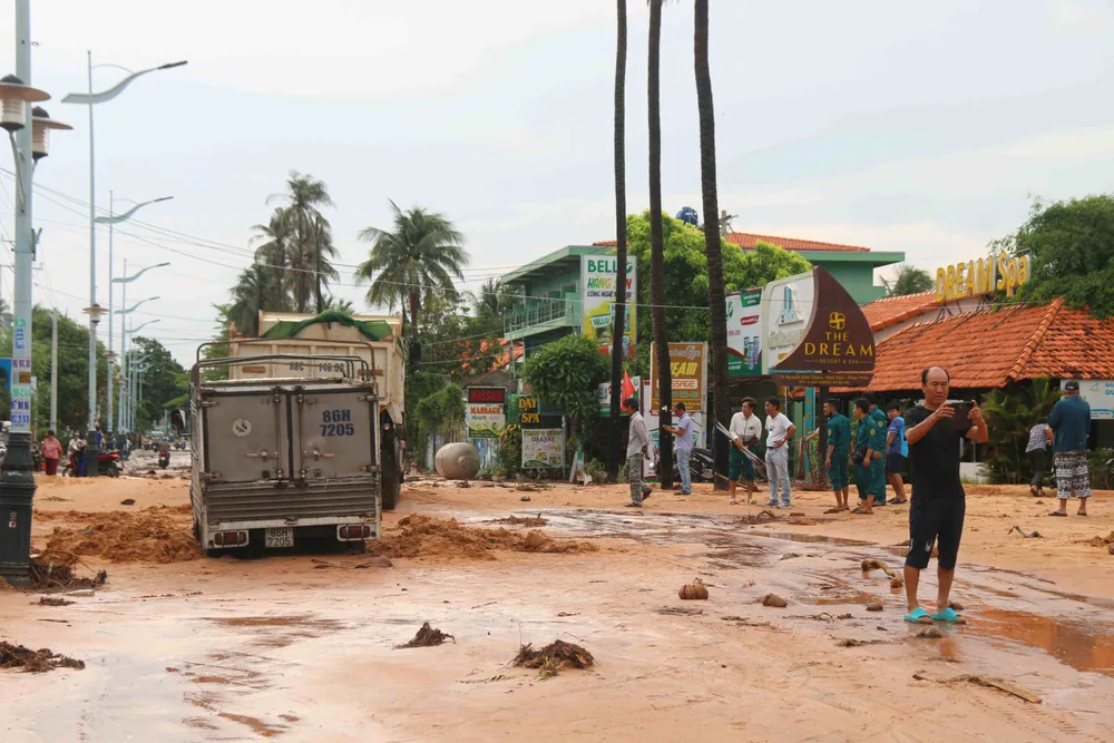 Nhận được thông tin, UBND phường Hàm Tiến và UBND TP Phan Thiết đã điều nhiều nhân lực, phương tiện để hỗ trợ người dân khắc phục sự cố. Đến khoảng 7 giờ 30 phút cùng ngày, hàng ngàn m3 cát đỏ vẫn phủ kín đoạn đường Nguyễn Đình Chiểu.