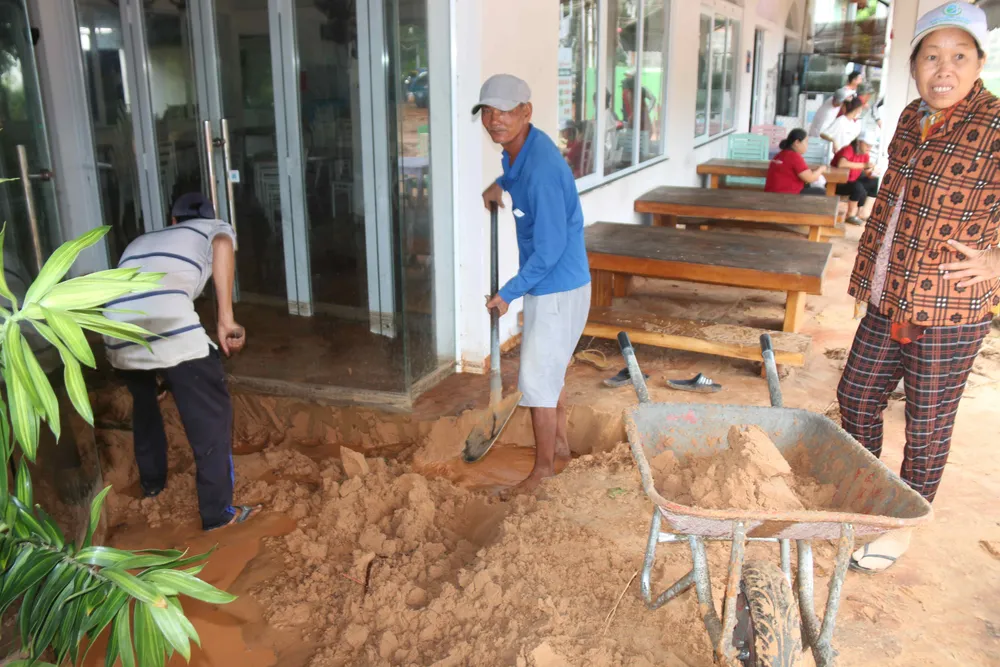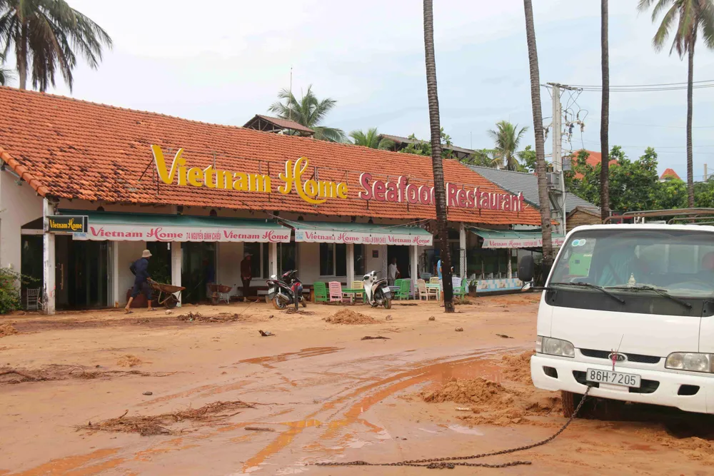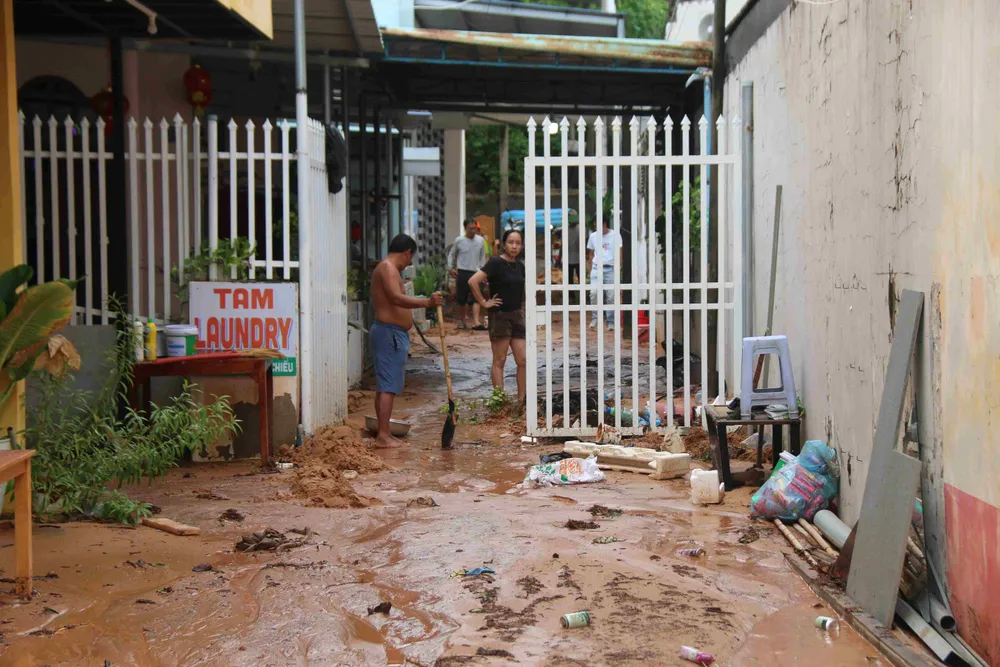 Trong khi đó, chị Liên (chủ quán tạp hóa trên đường Nguyễn Đình Chiểu) cho biết, khi gia đình đang ngủ thì thấy nước tràn vào nhà, gia đình vừa kịp chạy ra ngoài thì cát đỏ ập xuống, làm sập một số công trình của gia đình.