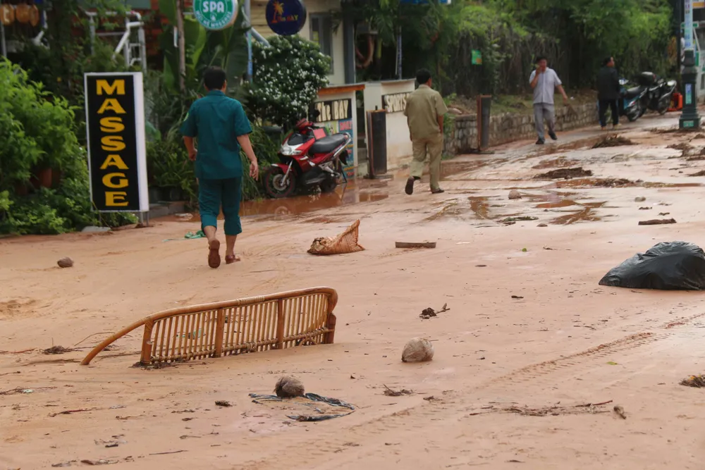 Theo bảo vệ của nhà hàng Vietnam Home (đường Nguyễn Đình Chiểu), khoảng 1 giờ sáng cùng ngày, mưa lớn kéo dài đã khiến lượng cát đỏ kèm theo nước từ trên đồi cao tràn xuống đường. Chỉ trong một thời gian ngắn, hàng ngàn m3 nước kèm cát đỏ trôi xuống đường, tràn vào nhà hàng và nhiều nhà dân.