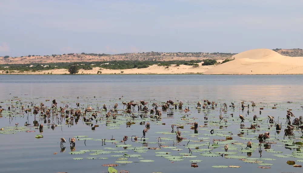 Theo người dân địa phương, Bàu Bà là một hồ nước ngọt nằm giữa sa mạc cát trắng, có diện tích trên 70ha, còn được biết đến với tên gọi Bàu Sen. Cứ khoảng tháng 5 đến tháng 9 hàng năm, sen nở kín mặt hồ, tạo thành một tuyệt cảnh thiên nhiên.