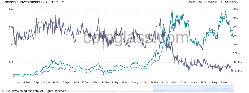 Ở mức 22,95% tính đến ngày 18/12, mức chiết khấu chưa bao giờ cao như vậy, một hiện tượng khiến nhiều người cho là thiếu hụt nhu cầu đối với cổ phiếu GBTC.