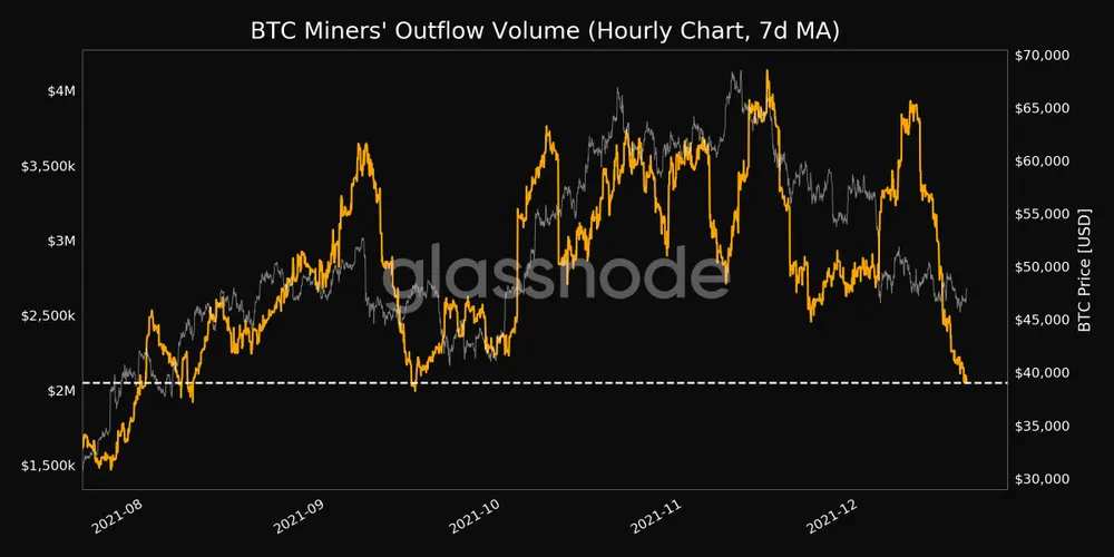 Theo dữ liệu từ Glassnode, dòng ra của thợ mỏ giảm gần một nửa chỉ trong hơn 1 tháng, giống như động lực thị trường thay đổi kể từ mức cao nhất mọi thời đại.