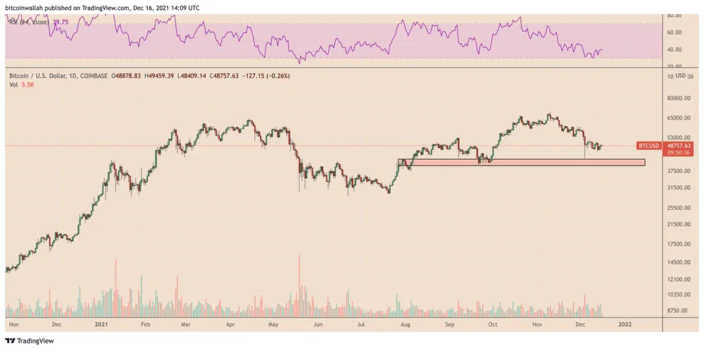 Biểu đồ giá BTC/USD khung hàng ngày hiển thị hỗ trợ $ 40K-42K | Nguồn: TradingView
