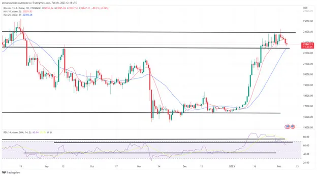 BTC/USD hiện đã giảm xuống thấp hơn trong năm phiên liên tiếp, với mức giảm đêm qua đẩy giá xuống mức thấp nhất là 22.734,48 USD.