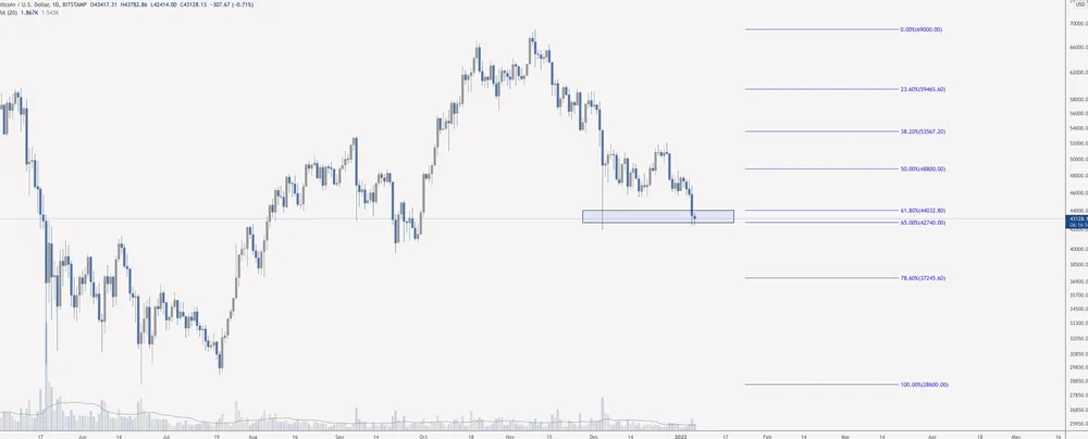 Một chút phân tích cuối cùng làm nổi bật điểm nối quan trọng nơi thị trường đang ở được cung cấp bởi nhà phân tích thị trường độc lập Scott Melker, người đã đăng biểu đồ sau cho thấy Bitcoin nằm giữa mức thoái lui Fib 0,65 và 0,618.