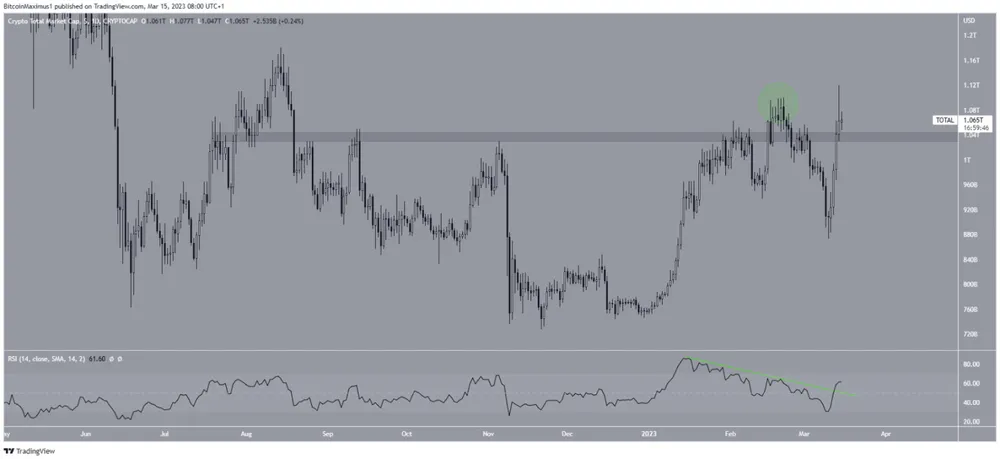 TOTALCAP bắt đầu tăng mạnh sau đó và giành lại vùng này vào ngày 14-3, dẫn đến mức cao mới hàng năm là 1,12 nghìn tỷ USD trong quá trình này.