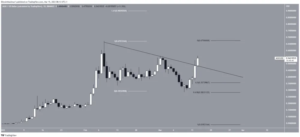Giá SingularityNET (AGIX) đã bứt phá đường kháng cự giảm dần vào ngày 15-3. Nó hiện đang tiến gần đến mức cao hàng năm là 0,67 USD.