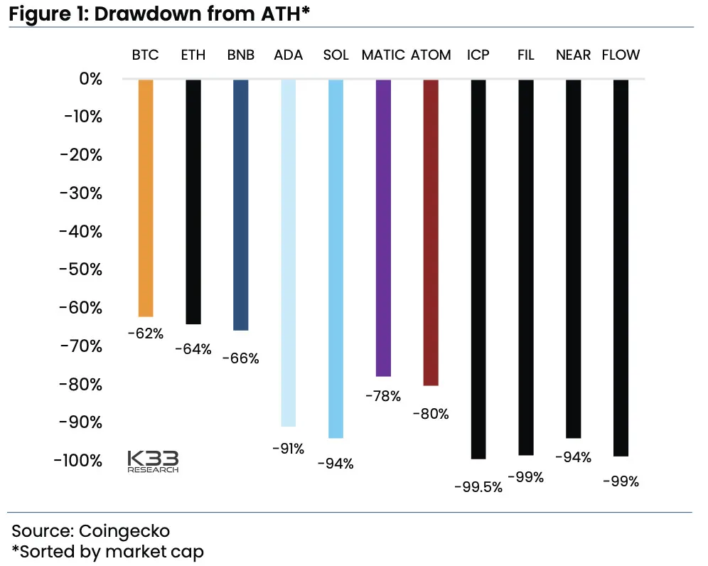 K33 Research lưu ý: “Trong năm tới, chúng ta có thể thấy sự thống trị của BTC và ETH tăng hơn nữa do gánh nặng chi phí và rủi ro khi phân bổ vốn cho các altcoin từ kỷ nguyên 2017 trở đi. Các quỹ có thể sẽ từ chối cách tiếp cận tùy tiện do công việc tuân thủ quá mức và tổng khối lượng giao dịch thấp, không khuyến khích nhiều nhà đầu tư tham gia thị trường. Điều này có thể hạn chế thanh khoản hơn nữa và dẫn đến thị trường hoạt động chậm”.