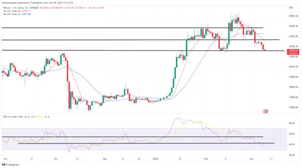 Bitcoin (BTC) đã giảm phiên thứ tư liên tiếp vào hôm qua, khi thị trường phản ứng với tin tức rằng Ngân hàng Silvergate sẽ thanh lý hoạt động của mình.