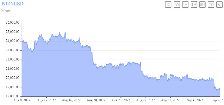 Con số 18.733 USD không xa so với mức 18.600 USD được ghi nhận vào ngày 4-7. Việc mất 3% giá trị Bitcoin không liên quan đến việc các nhà đầu tư thay thế tài sản Bitcoin bằng các altcoin khác, vì Ethereum cũng giảm 5% và Cardano (ADA), giảm 7% trong 24 giờ qua.