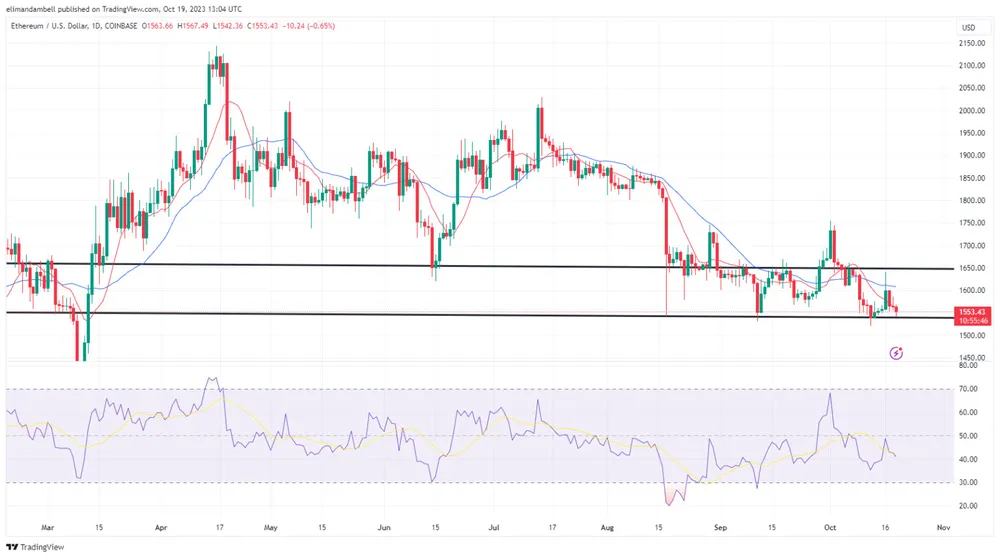 Sau khi đạt mức cao nhất là 1.580,26 USD vào thứ Tư 18/10, ETH/USD đã giảm xuống mức thấp nhất trong ngày là 1.543,59 USD vào đầu ngày hôm qua.