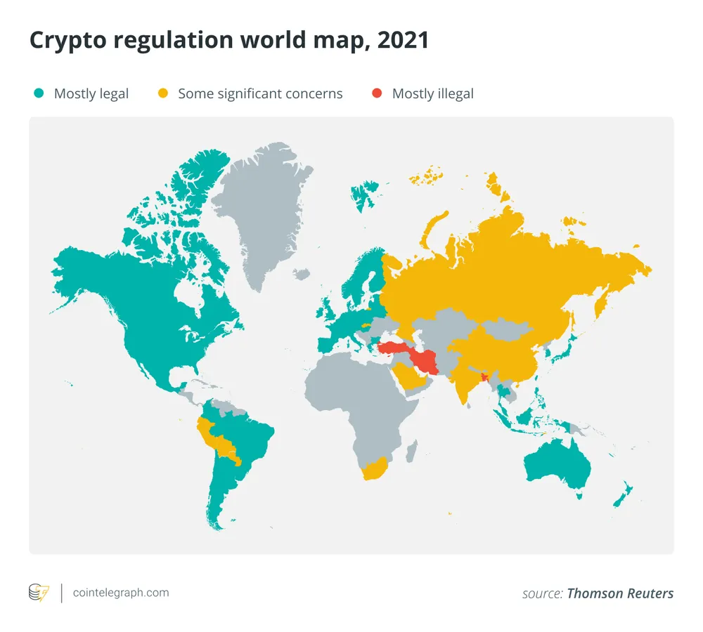 Biểu đồ thế giới về quy định tiền điện tử trong năm 2021 | Nguồn: Thomson Reuters