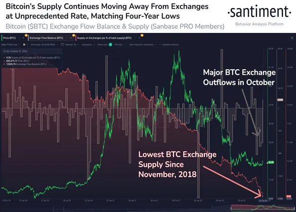 Cụ thể, số dư BTC trên sàn giao dịch đã đạt mức thấp nhất trong 4 năm, sau khi giảm thêm 8,3%. Với số liệu này, nhà đầu tư đang xu hướng giảm bán.