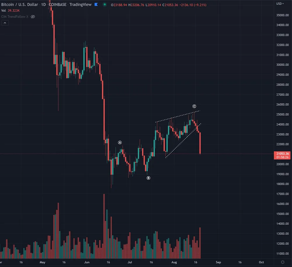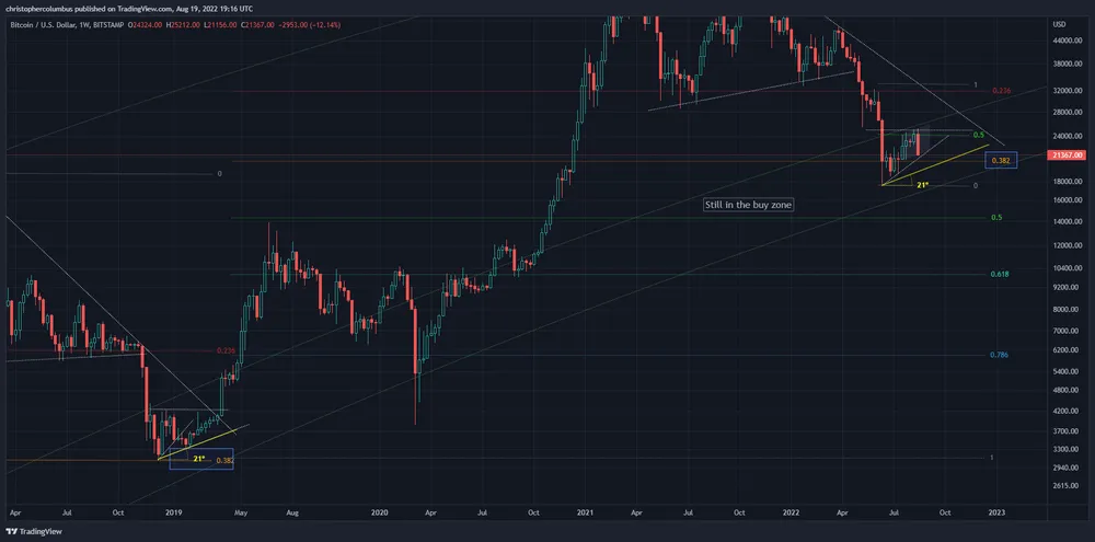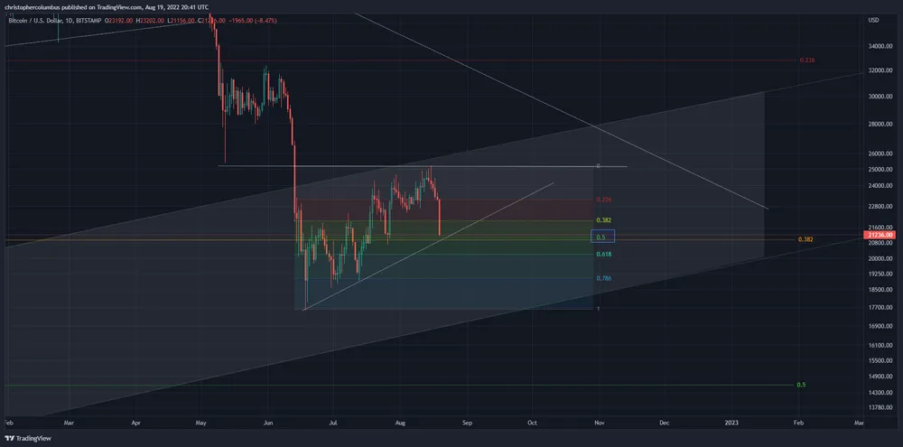 Tại thời điểm viết bài lúc 6 giờ 10 phút ngày hôm nay 22-8, Bitcoin đang giao dịch ở mức 21.674 USD, cao hơn khu vực Fib quan trọng của Dave the Wave tại 21.000 USD.