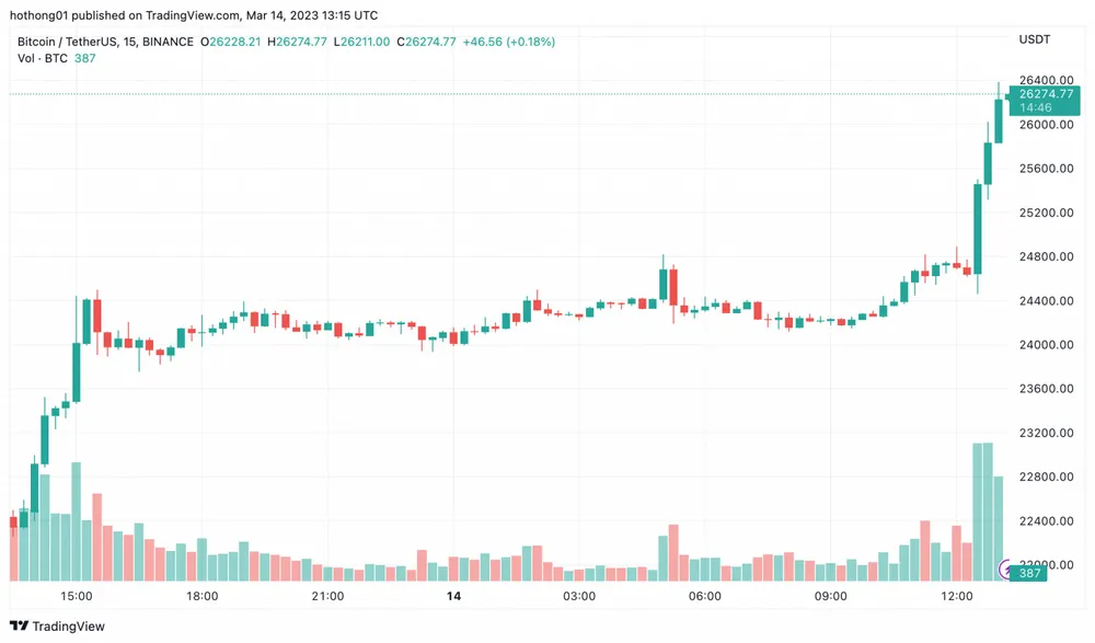 Tin tức đã tạo ra tác động tích cực đến thị trường tiền điện tử, với các loại tiền điện tử lớn có mức tăng hơn 10%, theo CoinMarketCap. Giá Bitcoin tăng vọt 18% để vượt qua 26.000 USD, đạt 26.274 USD vào thời điểm viết bài.