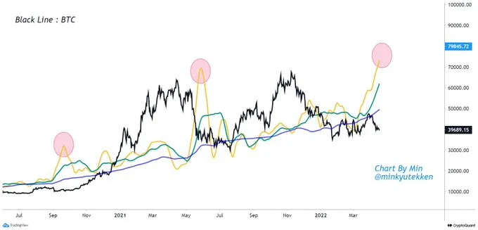 Woo nói thêm rằng kể từ quý 4-2020, bất cứ khi nào Bitcoin được giao dịch dưới đường hỗ trợ MA 200 (đường trung bình động 200 ngày) thì một lượng lớn “tiền thông minh” sẽ bắt đầu tích lũy Bitcoin. Như biểu đồ của Woo chỉ ra, Bitcoin đã chìm vào “vùng đáy” và lượng người mua cũng tăng đột biến theo đó.