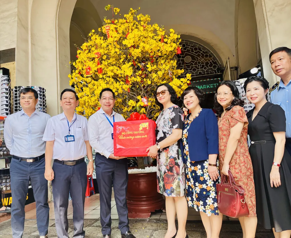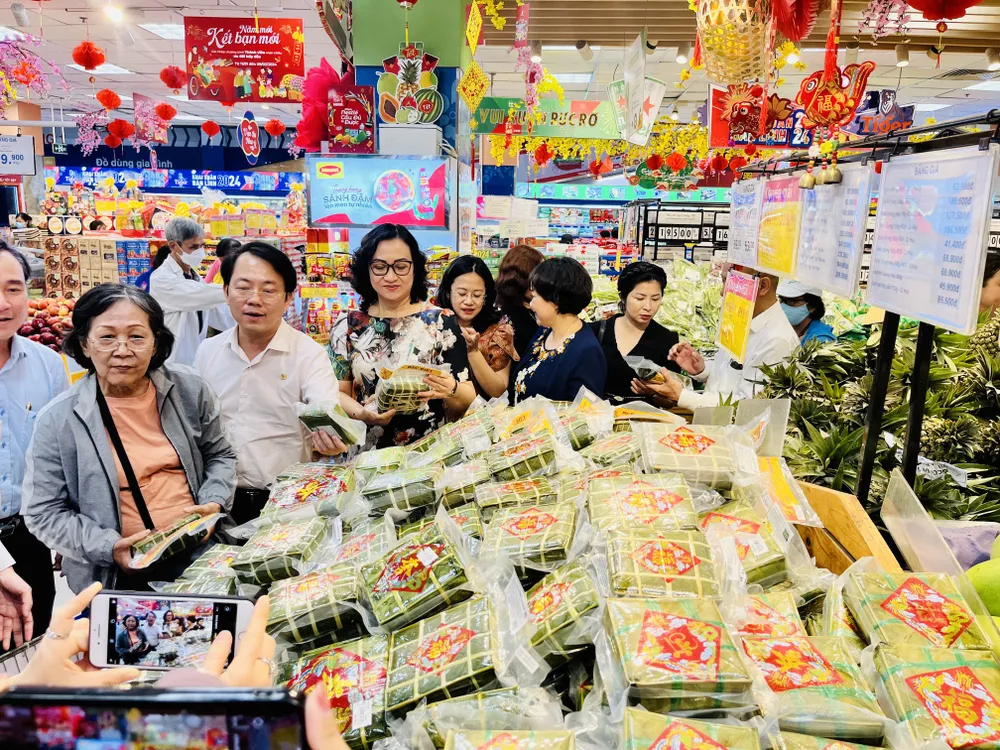 Bả Phan Thị Thắng làm trưởng đoàn, cùng đại diện các cơ quan chuyên trách đã có chuyến kiểm tra công tác chuẩn bị hàng hóa phục vụ Tết Nguyên đán 2024 tại siêu thị Co.op Mart Lý Thường Kiệt (quận 10) và chợ Bến Thành (quận 1).
