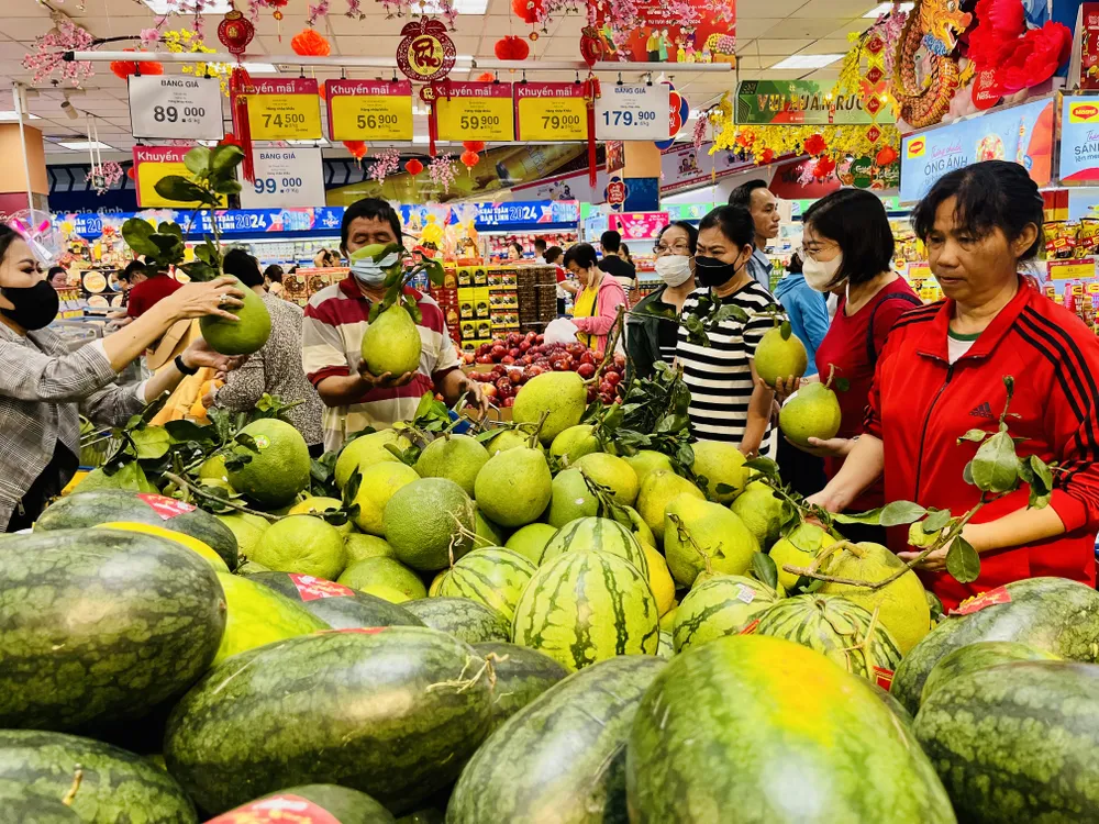 Trao đổi với đoàn, ông Nguyễn Anh Đức, Tổng Giám đốc Saigon Co.op cho hay, sức mua của toàn hệ thống tăng từ 15-20% theo từng tuần kinh doanh tết. Cụ thể, từ 5 đến 9-2 (ngày 26 đến 30 tháng Chạp) bước vào cao điểm mua sắm tết nên hệ thống siêu thị Co.opmart, Co.opXtra, Co.op Food… tập trung nguồn lực, liên tục đưa hàng tết lên quầy kệ.