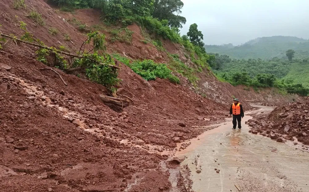 Bộ đội biên phòng xã Hướng Lập cảnh báo sạt lở đường Hồ Chí Minh nhánh Tây, thôn A Xóc - Cha Lỳ