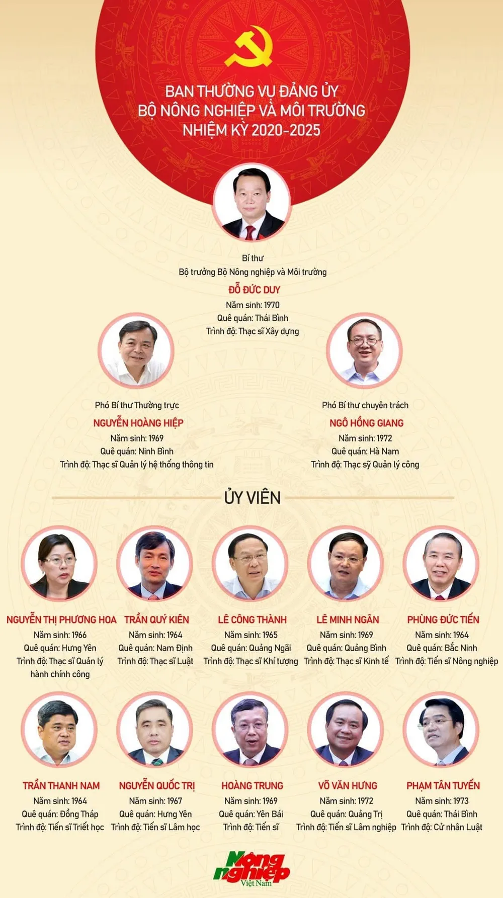 Ban Thường vụ Đảng ủy Bộ Nông nghiệp và Môi trường nhiệm kỳ 2020 - 2025