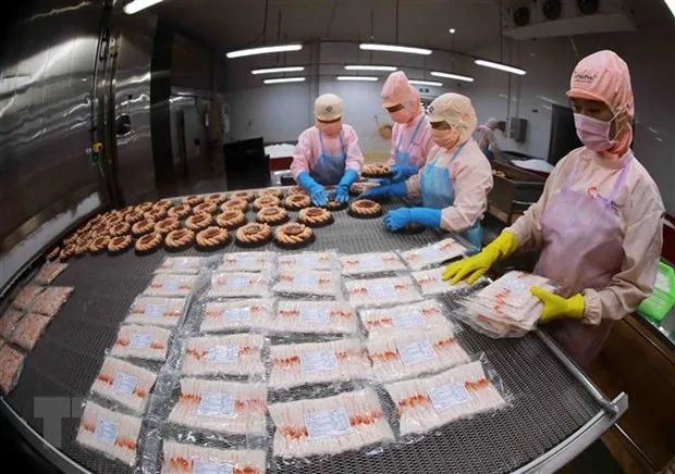 Đóng gói tôm thành phẩm xuất khẩu. (Ảnh: Vũ Sinh/TTXVN)