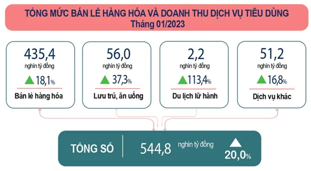 Tình hình kinh tế - xã hội tháng Một diễn ra trong bối cảnh cả nước đón Tết Nguyên đán Quý Mão đồng thời triển khai thực hiện Nghị quyết số 01/NQ-CP (ngày 6/1) của Chính phủ về nhiệm vụ, giải pháp chủ yếu thực hiện Kế hoạch phát triển kinh tế-xã hội và dự toán ngân sách Nhà nước năm 2023.
