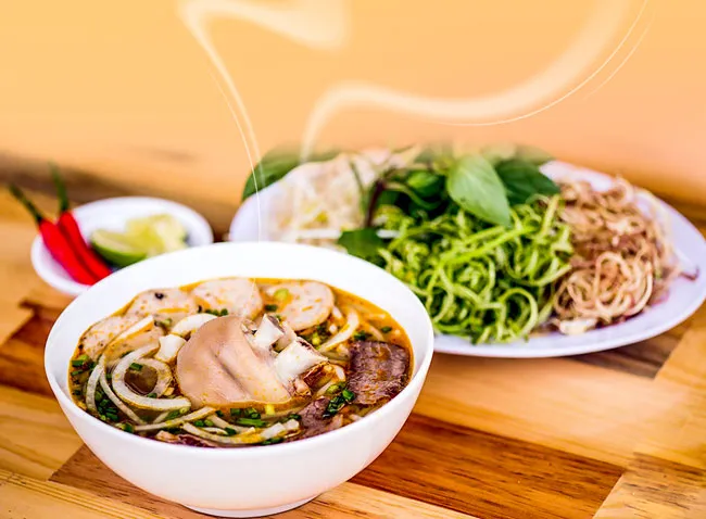 Sáng sớm ngủ dậy, tôi thường đến quán o Hương ở đường Chi Lăng, đoạn gần đường Hồ Xuân Hương, thành phố Huế. Ở đây thực khách luôn đông nghịt vào tầm 7-9 giờ sáng. Vào quán, thích ăn bún bò giò heo kiểu gì, như thêm chả, thêm huyết… chỉ cần gọi chủ quán là xong. Sau đó, ngồi vào bàn lau đũa và chờ. Bún và nước dùng được chủ quán múc vào tô, nóng hổi đặt lên bàn, thêm dĩa rau sống tươi sạch ăn kèm.
