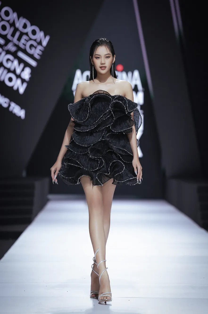 Là thương hiệu trình diễn trong đêm bế mạc tuần lễ thời trang, Học viện Thiết kế và Thời trang London đã “thổi làn gió mới” thông qua 4 BST đến từ 4 “phù thủy trẻ” của ngôi trường này: Phạm Hương Trà, Tú Đặng, Nguyễn Phạm Thu Trang, Lỗ Thị Thanh Dung.