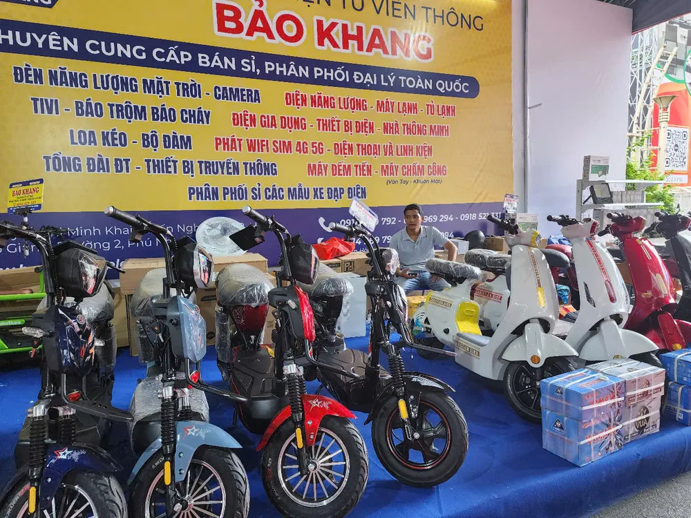 Một gian hàng trưng bày xe máy điện tại Triển lãm quốc tế Vietbuild 2025, vừa diễn ra tại Công viên phần mềm Quang Trung, TPHCM. Ảnh: ĐỨC TRUNG