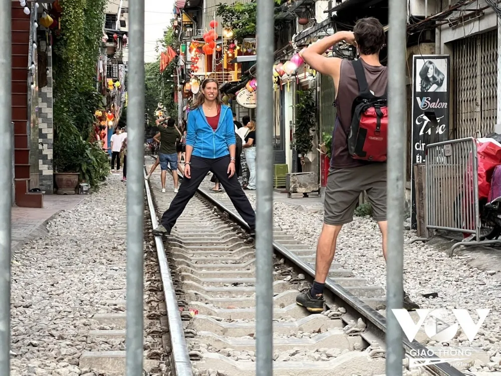 Mặc dù đã có rào chắn và biển cảnh báo, thế nhưng du khách vẫn thường xuyên đứng ra khu vực đường ray tàu để chụp ảnh