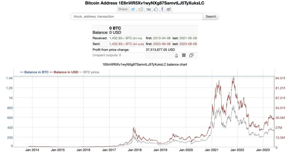 Theo Lookonchain, một nền tảng giám sát các giao dịch tiền điện tử, ví ẩn danh đã không hoạt động kể từ ngày 9-4-2013. Lúc bấy giờ, giá của một Bitcoin chỉ khoảng 195,4 USD. So với giá hiện hành, tài sản của cá voi này đã tăng hơn 13.400 lần.