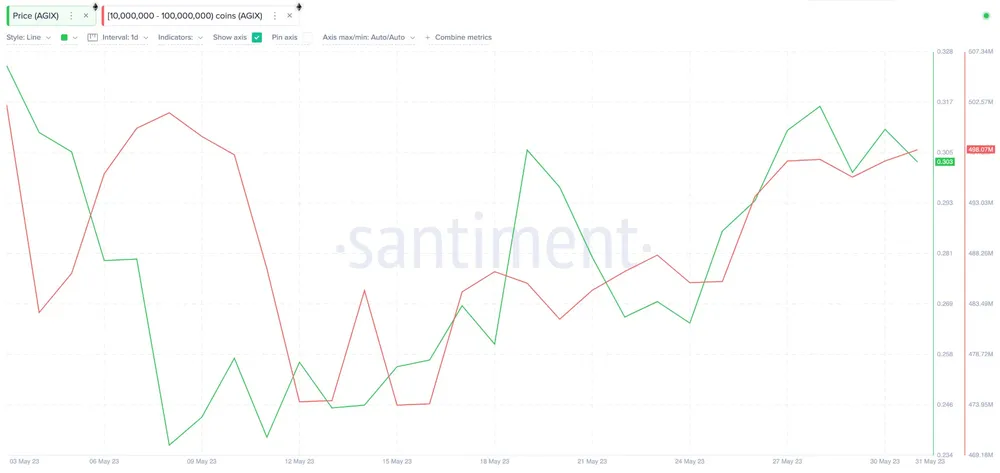 Số dư của ví cá voi Singularity (AGIX) vào tháng 5-2023 | Nguồn: Santiment