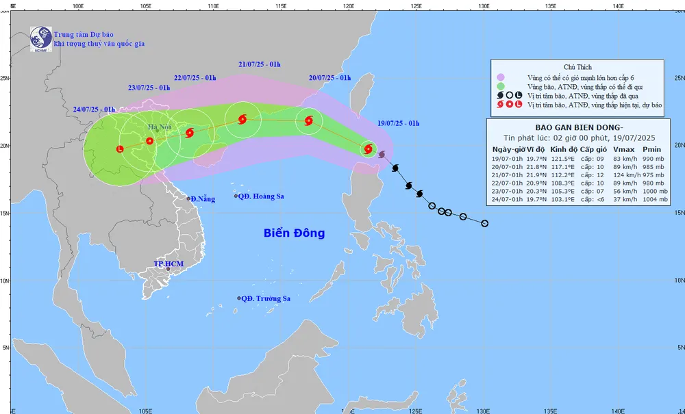 Hiện tại, các mô hình và cơ quan khí tượng quốc tế như GFS (Hoa Kỳ), ECMWF (châu Âu) nhận định, ngay buổi sáng nay 19-7, tâm bão đi vào Biển Đông. Trung tâm Dự báo khí tượng - thủy văn quốc gia cũng nhận định sáng nay, bão Wipha sẽ trở thành cơn bão số 3 trên Biển Đông năm 2025.
