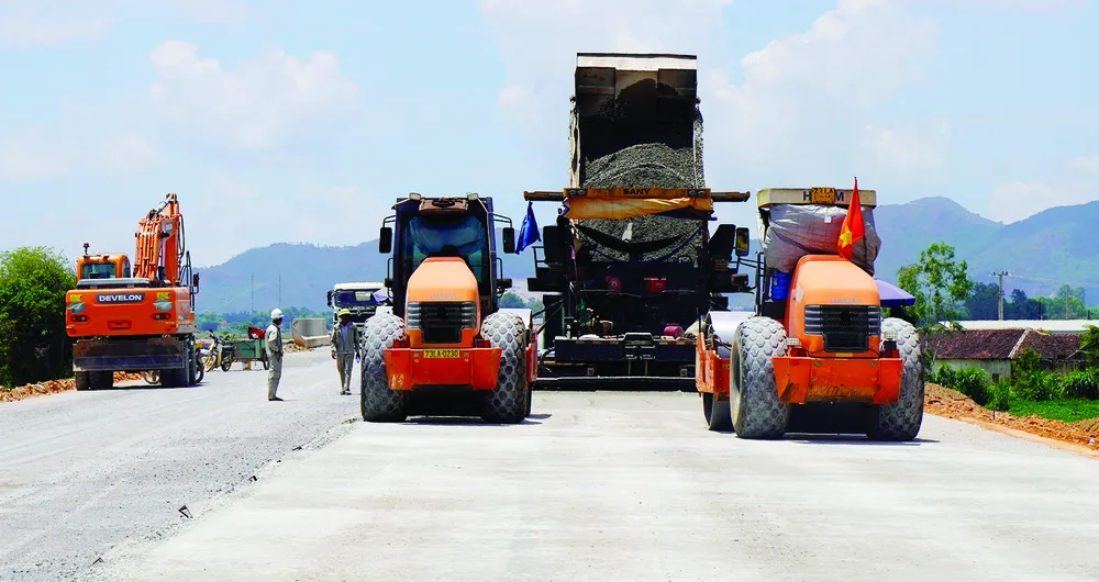 Trải đá cấp phối tại dự án đường cao tốc Quy Nhơn - Chí Thạnh (qua Bình Định và Phú Yên). Ảnh: NGỌC OAI