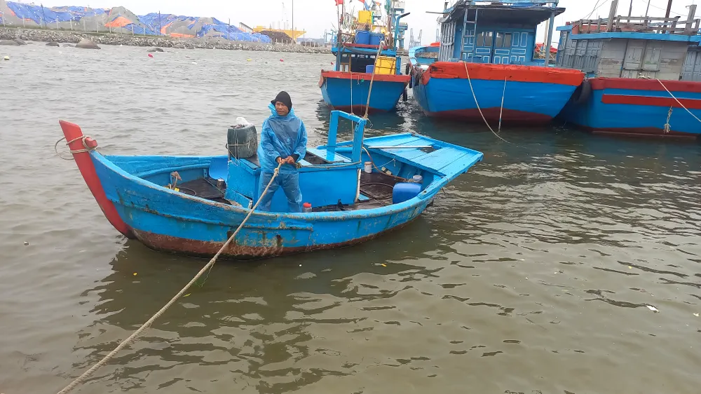 Một số ngư dân liên tục ra vào khu neo đậu tàu thuyền để chằng chống, cố định tàu của mình. Ảnh: XUÂN QUỲNH