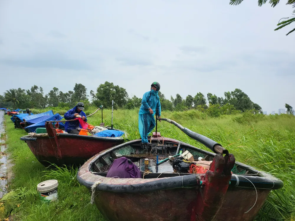 Mỗi chiếc xe tải cẩu được 2 thuyền nhỏ với giá 300.000-400.000 đồng/ chiếc. Ảnh: XUÂN QUỲNH
