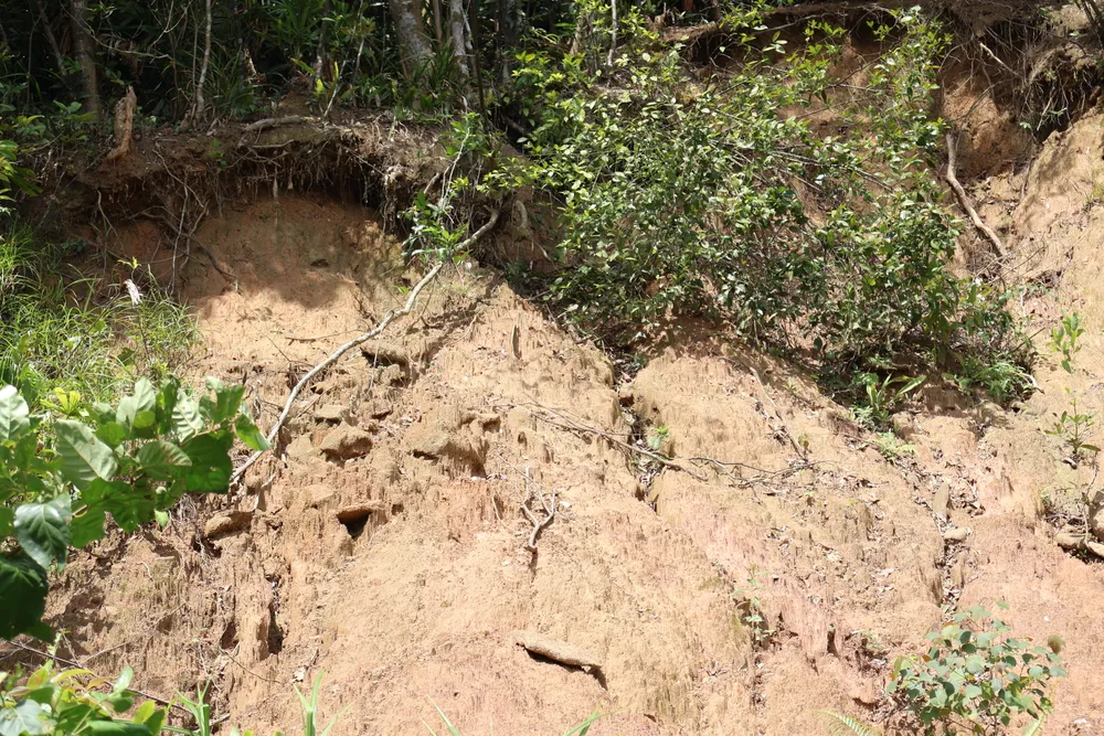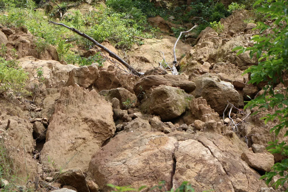 Tại một số vị trí, sườn núi độ dốc lớn xuất hiện tình trạng nước mưa gây xói mòn, sạt lở đất