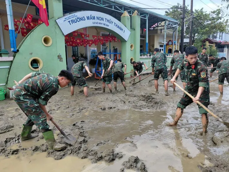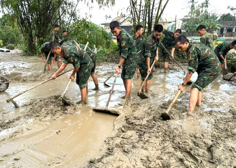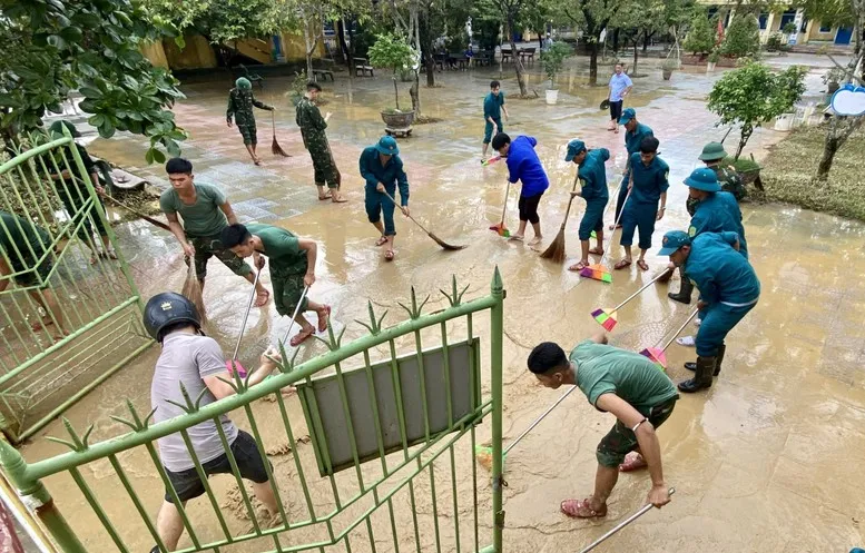 Để khẩn trương giúp nhân dân khắc phục hậu quả mưa lũ, trong sáng nay, Bộ CHQS thành phố đã điều động hơn 2.000 cán bộ, chiến sĩ của Ban Chỉ huy phòng thủ khu vực, Trung đoàn 6, Tiểu đoàn Tăng Thiết giáp 3 và các đơn vị trực thuộc, lực lượng dân quân của các Ban Chỉ huy quân sự xã, phường đồng loạt ra quân giúp địa phương tổng dọn vệ sinh môi trường sau mưa lũ trên tất cả các hướng. Tuy nhiên, nước lũ rút để lại lượng bùn, đất và rác thải lớn, rất khó khăn cho công tác dọn dẹp, vệ sinh môi trường.