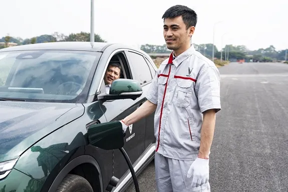 Với chi phí chỉ 50.000 đồng cho một lần sạc 15 phút, khách hàng có thể di chuyển tiếp được quãng đường lên tới 40km đối với xe VF e34 và 30km đối với xe VF 8.