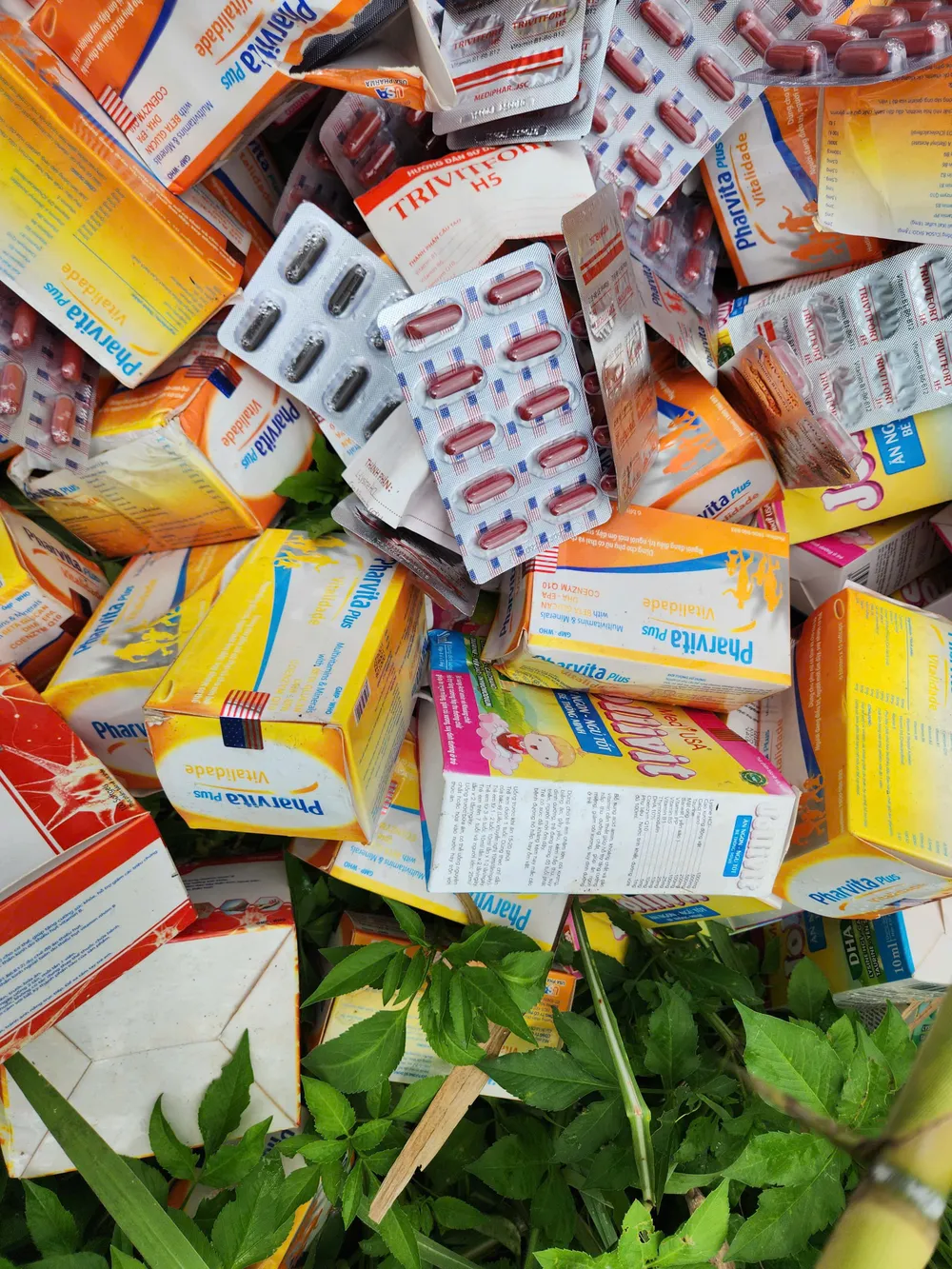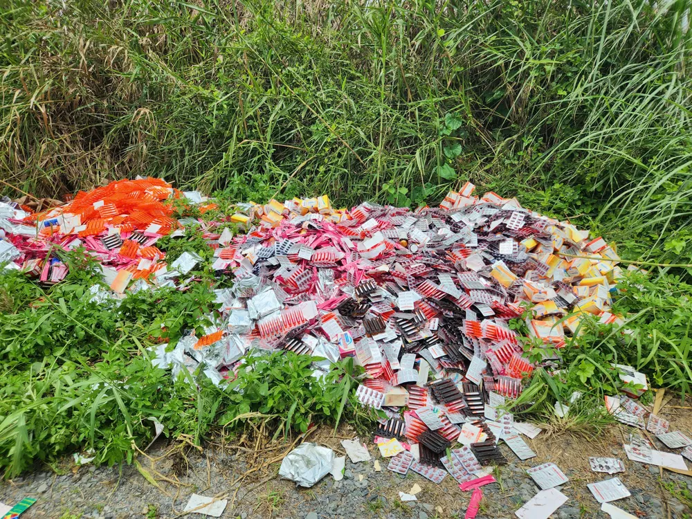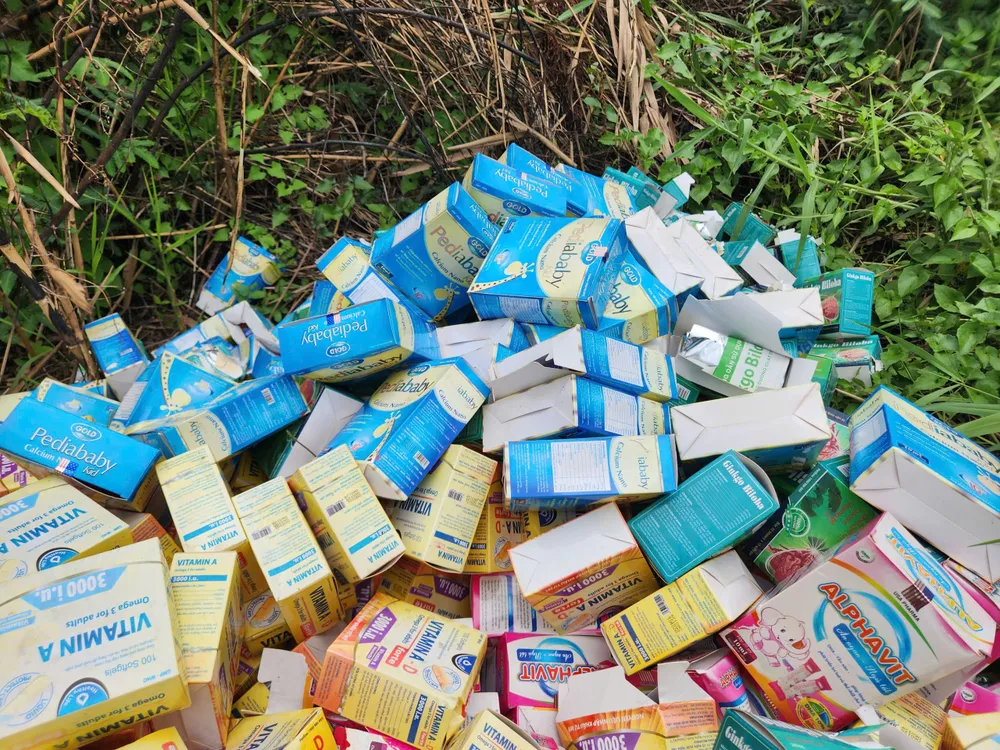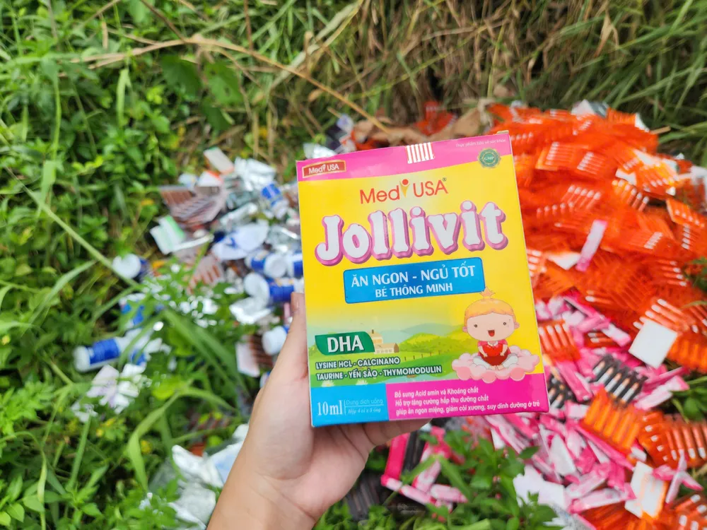 Ghi nhận thực tế của PV Báo SGGP, có hàng chục nhãn hiệu thực phẩm bảo vệ sức khoẻ bị đổ bỏ như: Entero Bifina, yến sào sữa non, Pediababy, Jollivit, Arginin, Pharvita plus… Ngoài ra, còn có 1 số vỉ thuốc Eurocare (một loại thuốc ho).