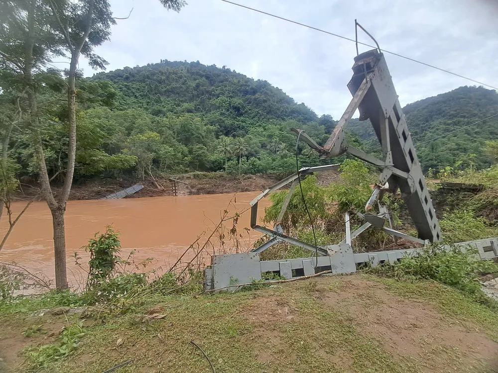 Cầu treo bị lũ cuốn trôi tại xã Tương Dương